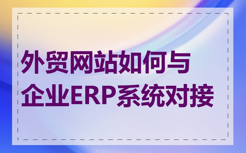 全球贸易背景下,企业ERP系统与外贸网络平台整合的创新实践